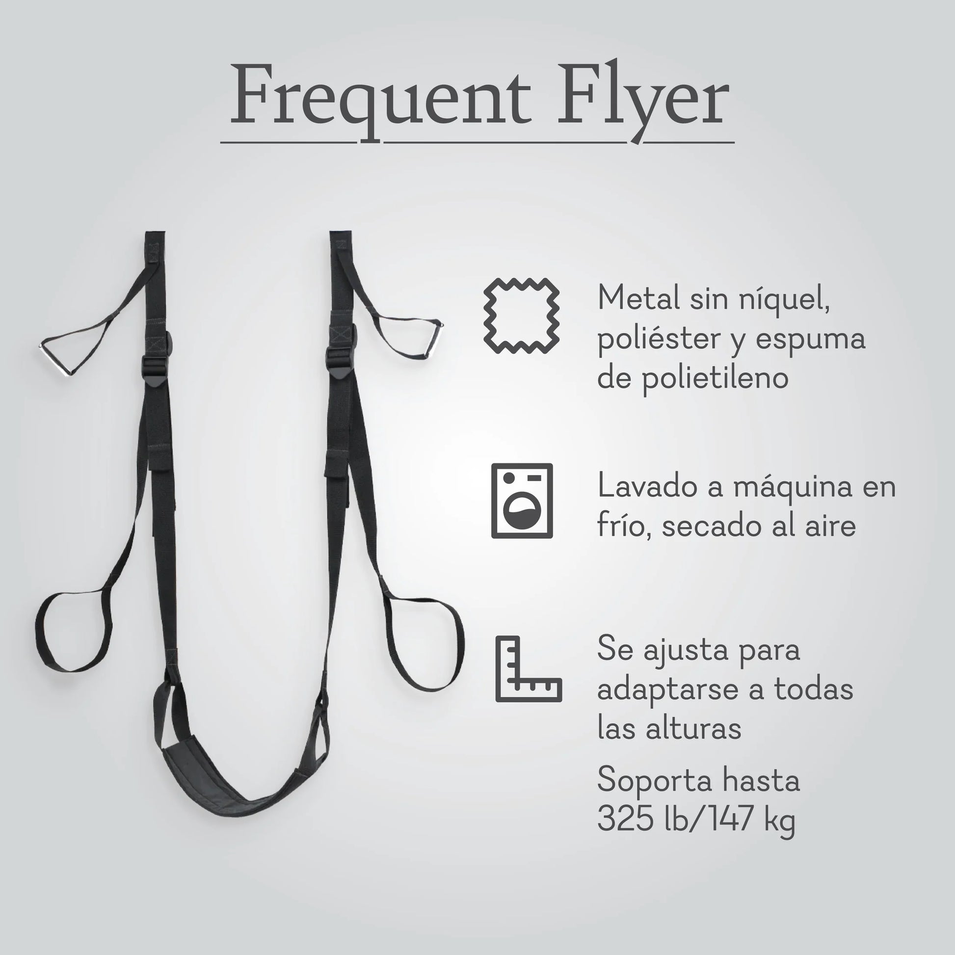 A bordo de su vuelo sin escalas al paraíso con el Swing de puerta de viajero frecuente. Esta ayuda de posición encaja en cualquier marco de puerta para acrobacias en el dormitorio que llevará el juego en pareja a un nivel completamente nuevo. Una vez sentado, coloque las correas y prepárese para moverse de una manera que nunca imaginó. El diseño del columpio permite a su pareja tomar el asiento para inclinar sus caderas. Simplemente configure el columpio en el marco de su puerta, ajuste las correas según sea necesario y prepárese para la máxima satisfacción.